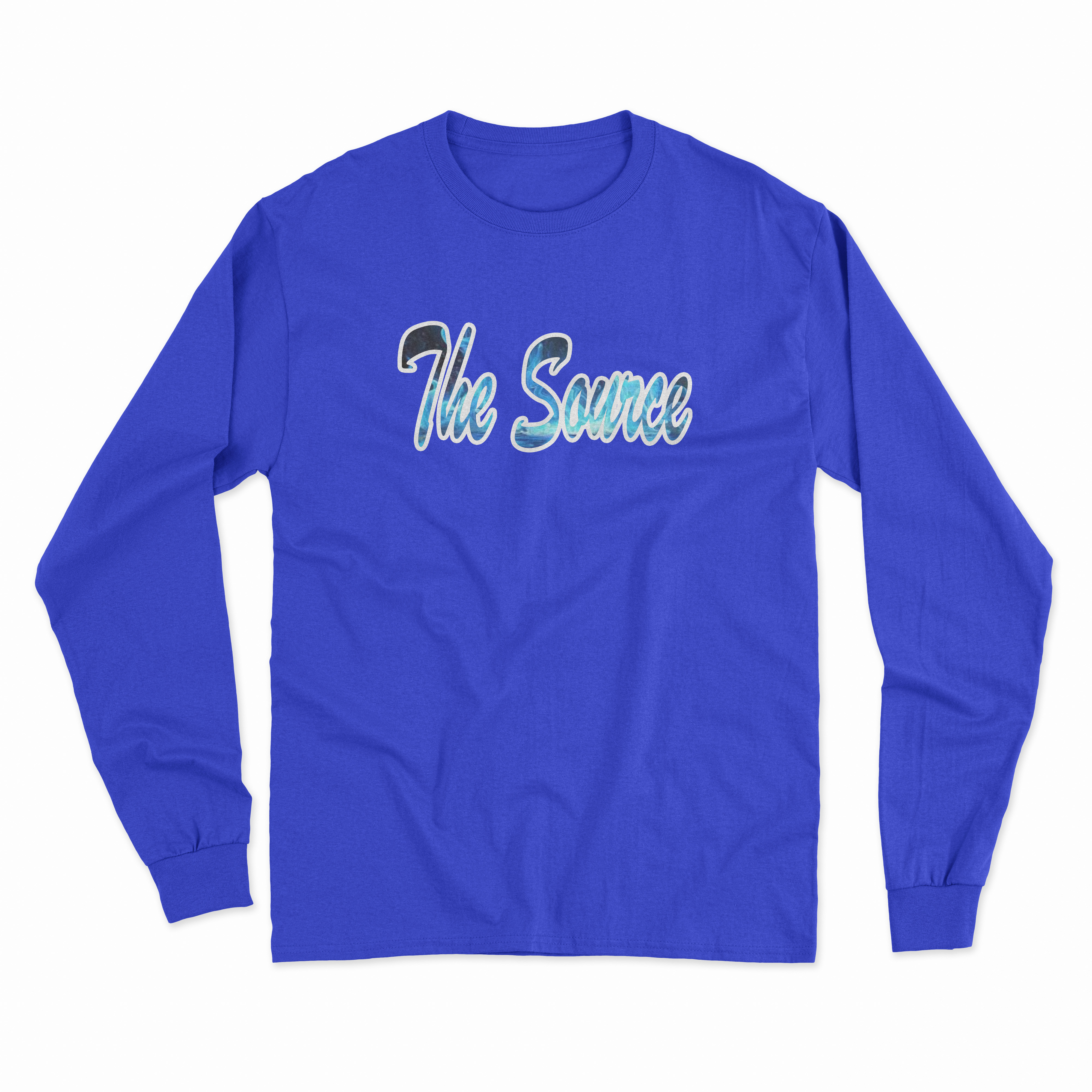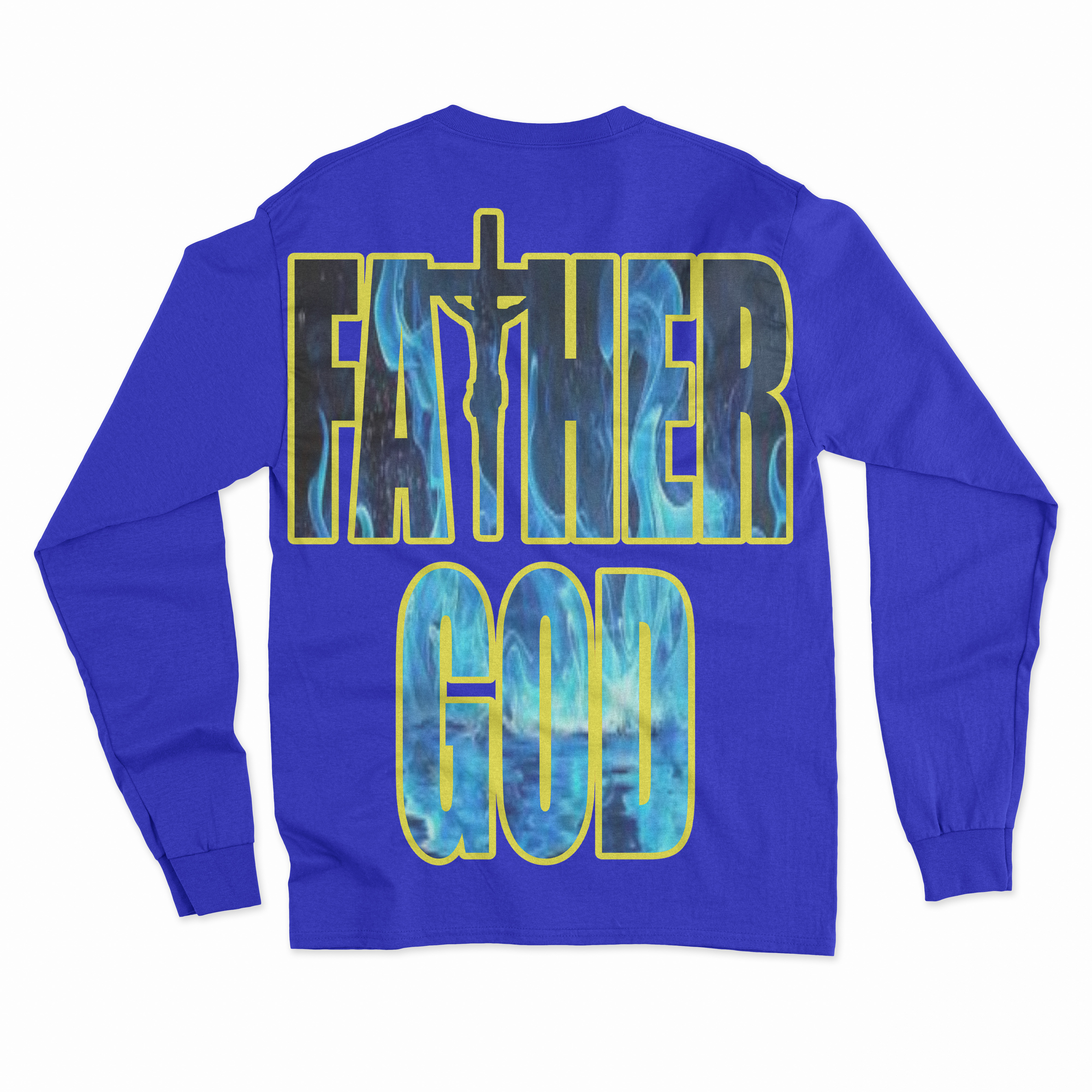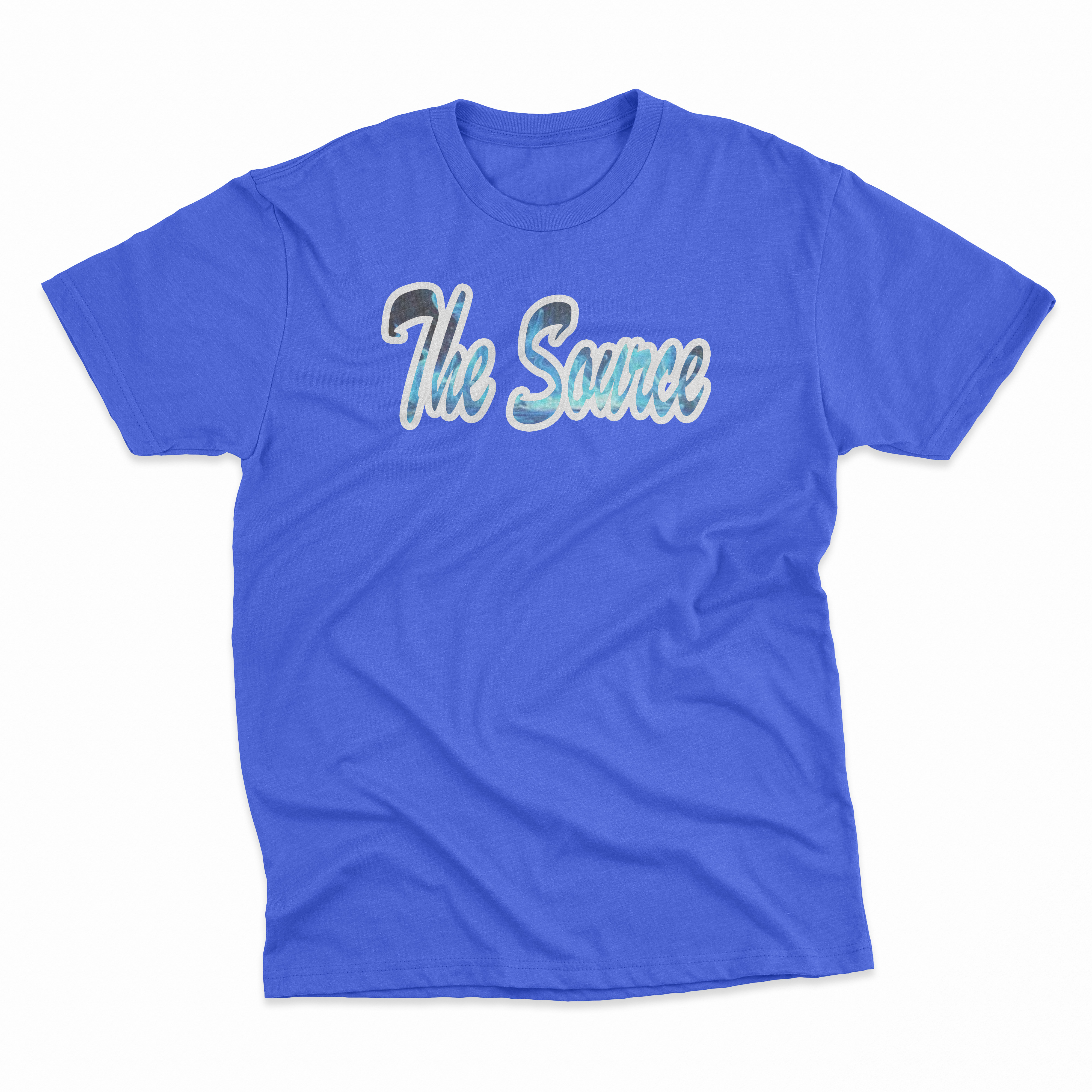 50/50 Cotton Poly blend material with a The Source design center chest placement, with a Father God design on the back.