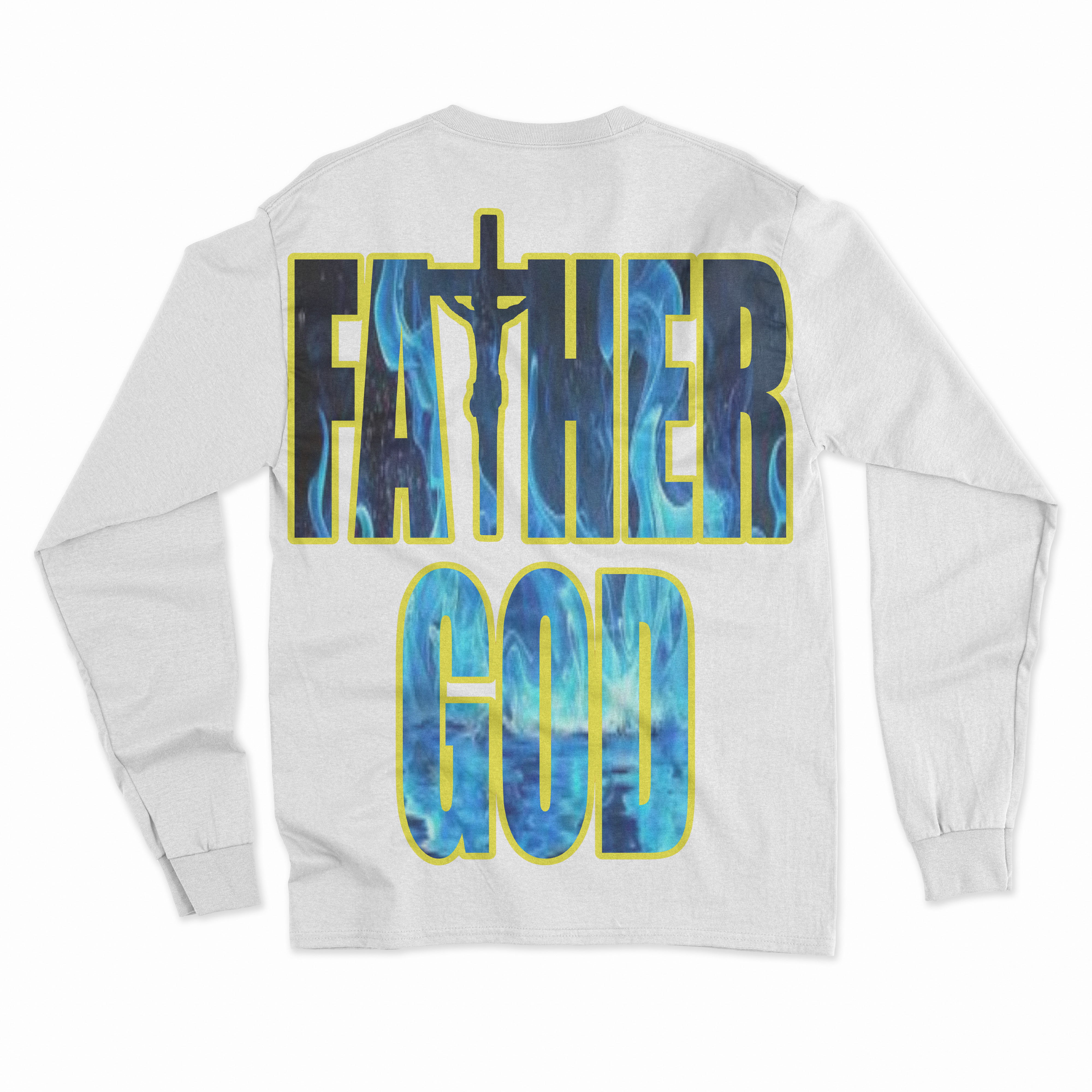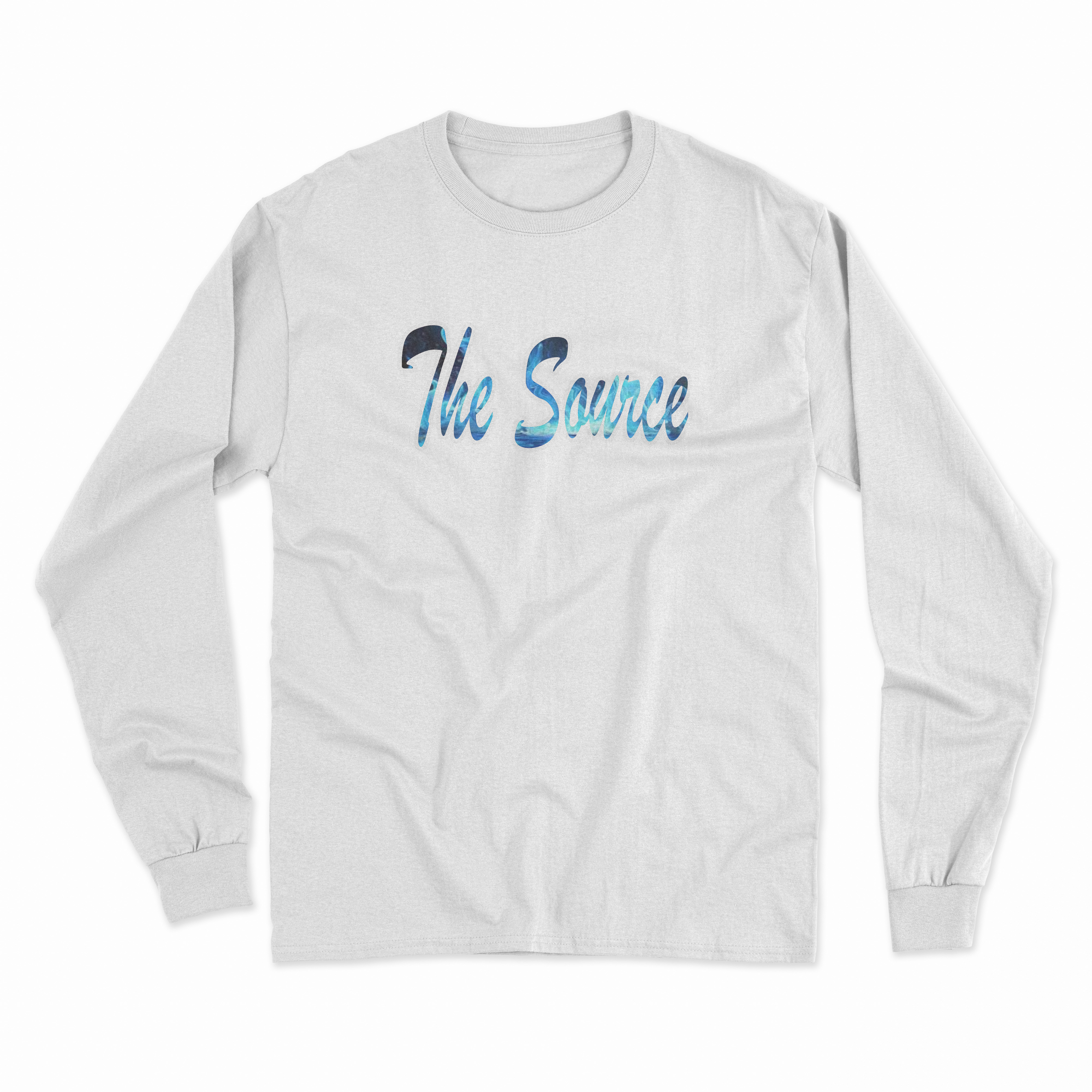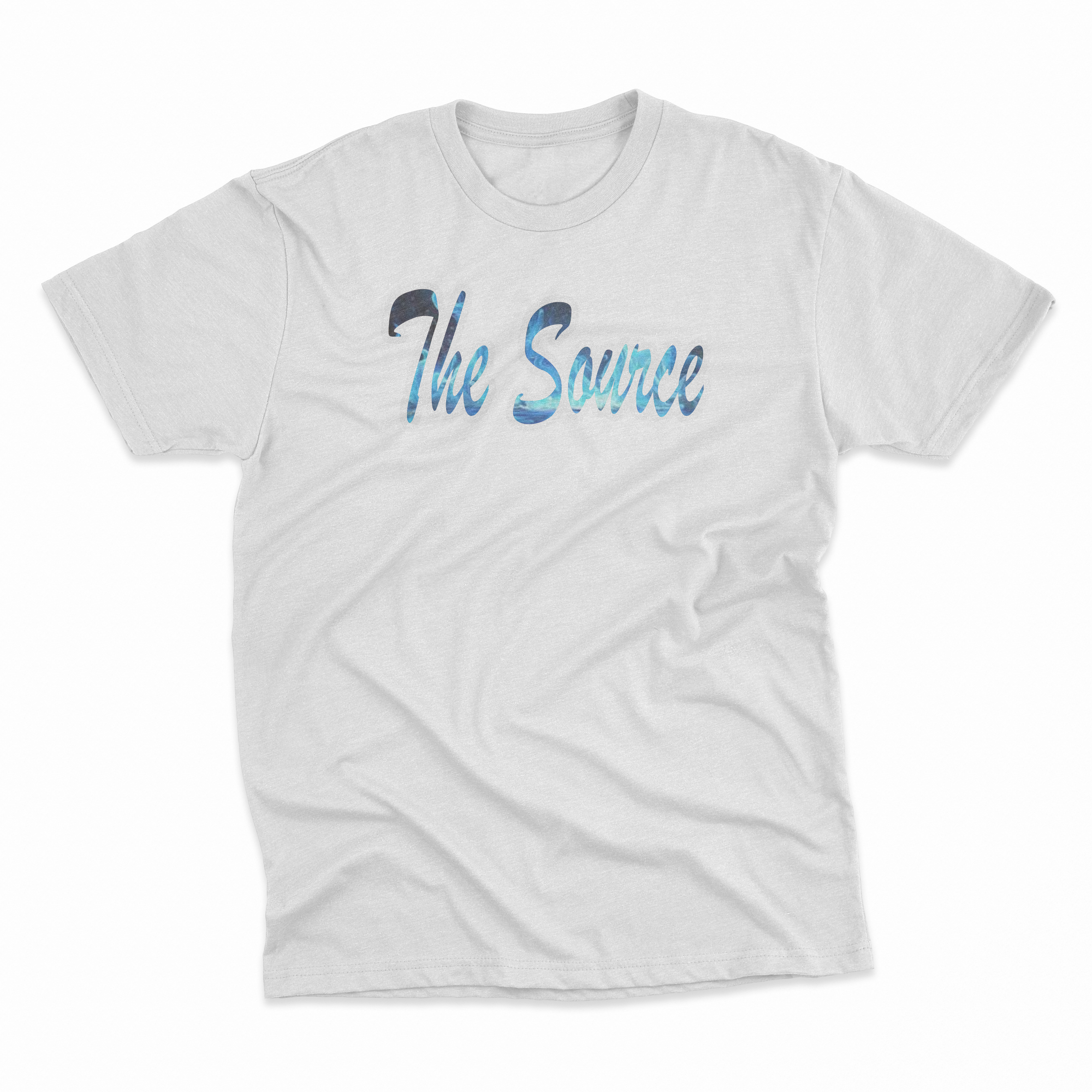 50/50 Cotton Poly blend material with a The Source design center chest placement, with a Father God design on the back.